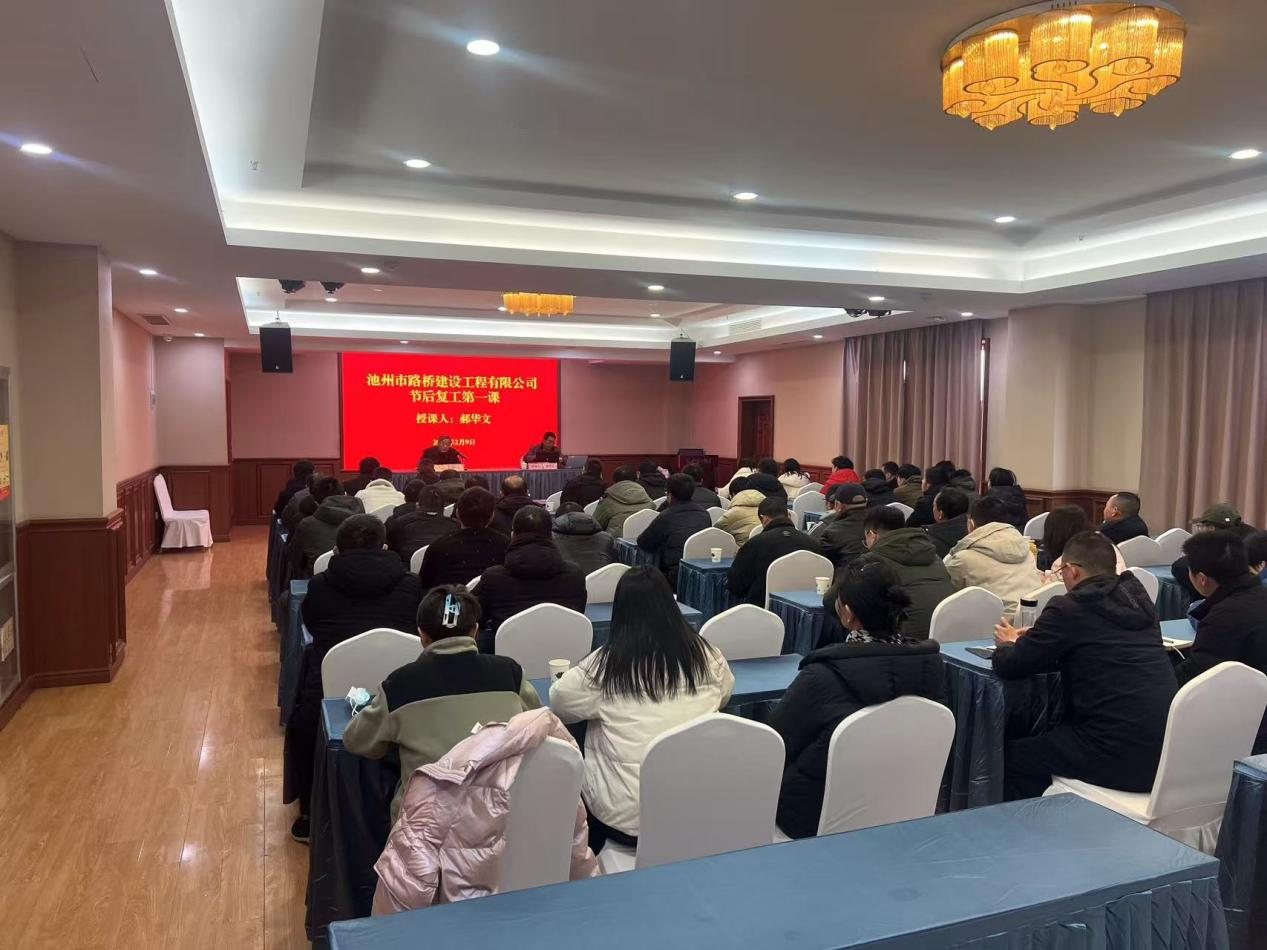 2月9日下午,市路橋公司組織全體職工舉辦了2025年春節(jié)“節(jié)后復(fù)工第一課”講座,進(jìn)一步做好節(jié)后復(fù)工復(fù)產(chǎn)安全生產(chǎn)工作,強(qiáng)化落實(shí)安全生產(chǎn)主體責(zé)任,用心用情上好“安全第一課”,助力復(fù)工復(fù)產(chǎn)。講座以增強(qiáng)員工安全生產(chǎn)意識(shí)、落實(shí)企業(yè)安全生產(chǎn)責(zé)任以及風(fēng)險(xiǎn)排查及防范為主要內(nèi)容,通過抓牢責(zé)任分解、抓深安全工作部署、抓嚴(yán)復(fù)工核準(zhǔn)、嚴(yán)格把好開工人員準(zhǔn)入關(guān)、認(rèn)真開展安全風(fēng)險(xiǎn)識(shí)別與分級(jí)管控、組織安全隱患全面深入排查、夯實(shí)應(yīng)急管理工作等方面深入講授,用大量案例引導(dǎo)企業(yè)切實(shí)做好復(fù)工復(fù)產(chǎn)安全生產(chǎn)工作,重點(diǎn)強(qiáng)調(diào)先安全后生產(chǎn)。“復(fù)工第一課”既是一次警示教育的安全會(huì),也是一次調(diào)整狀態(tài)的收心會(huì),市路橋公司將以此次“復(fù)工第一課”講座為契機(jī),持續(xù)強(qiáng)化公司安全生產(chǎn)教育,強(qiáng)化全體職工的安全意識(shí),提升安全生產(chǎn)管理水平,防范安全生產(chǎn)事故發(fā)生。