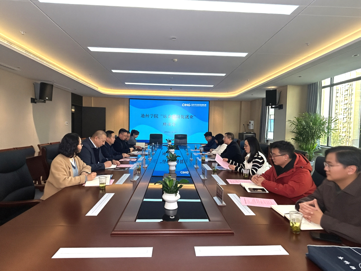 12月16日下午,池州學(xué)院地理與規(guī)劃學(xué)院院長張樂勤一行赴集團開展“訪企拓崗促就業(yè)”活動,集團黨委委員、副董事長黃代熱情接待并座談交流。集團人力資源部及二級集團負責(zé)人、池州學(xué)院地理與規(guī)劃學(xué)院各系主任參加座談交流。
