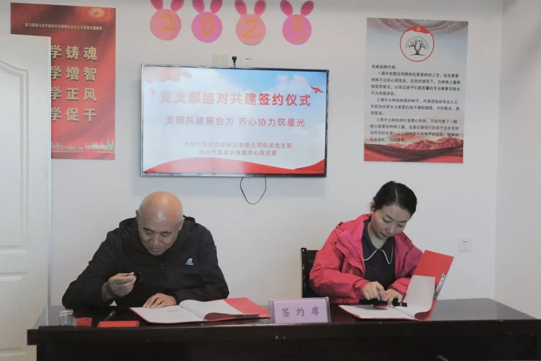 市民政局四級調研員張中才,市投控集團黨委副書記、機關支部書記嚴艷,市投控集團機關黨支部支委班子參加簽約儀式。簽約儀式前,池州星星樹康復中心負責人吳靜和市投控集團黨委副書記嚴艷分別就雙方單位情況作了介紹。