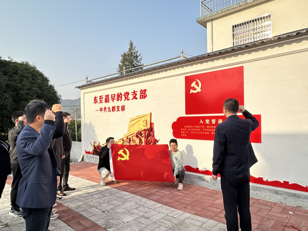 在活動(dòng)中兩支部的同志藏參觀了中共九都支部紀(jì)念館、胡炳炎故居,在這里大家受到了深刻的思想教育和精神洗禮。隨后全體黨員同志在廣場面向黨旗、高舉右拳,莊嚴(yán)宣誓。黨員同志們通過重溫入黨誓詞,回顧申請入黨時(shí)的滿腔熱血和堅(jiān)定決心。提醒自己時(shí)刻牢記誓言,終身踐行誓言。