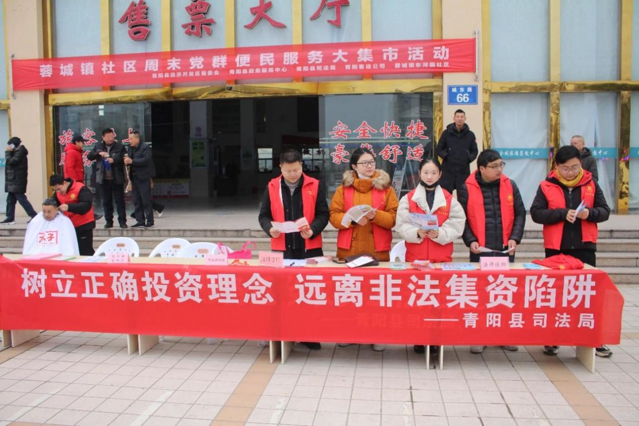 臨近年底,返鄉(xiāng)人員逐漸增多,為幫助群眾及返鄉(xiāng)人員擦亮眼睛,精準(zhǔn)識(shí)別各類投資陷阱,1月26日池州交運(yùn)集團(tuán)青陽(yáng)客運(yùn)公司、青陽(yáng)縣司法局聯(lián)合在站前廣場(chǎng)上開展預(yù)防非法集資法治宣傳活動(dòng)。