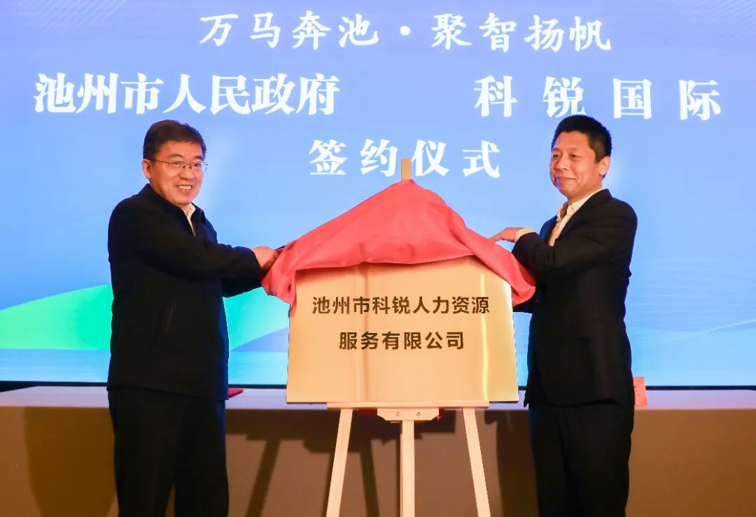 4月2日上午,池州市政府與科銳國際合作交流座談會(huì)暨合作項(xiàng)目簽約儀式舉行。市委書記朱浩東、科銳國際董事長(zhǎng)高勇出席并講話,共同為池州市科銳人力資源服務(wù)有限公司揭牌。市領(lǐng)導(dǎo)史孺牛、廖強(qiáng)、李軍等參加。