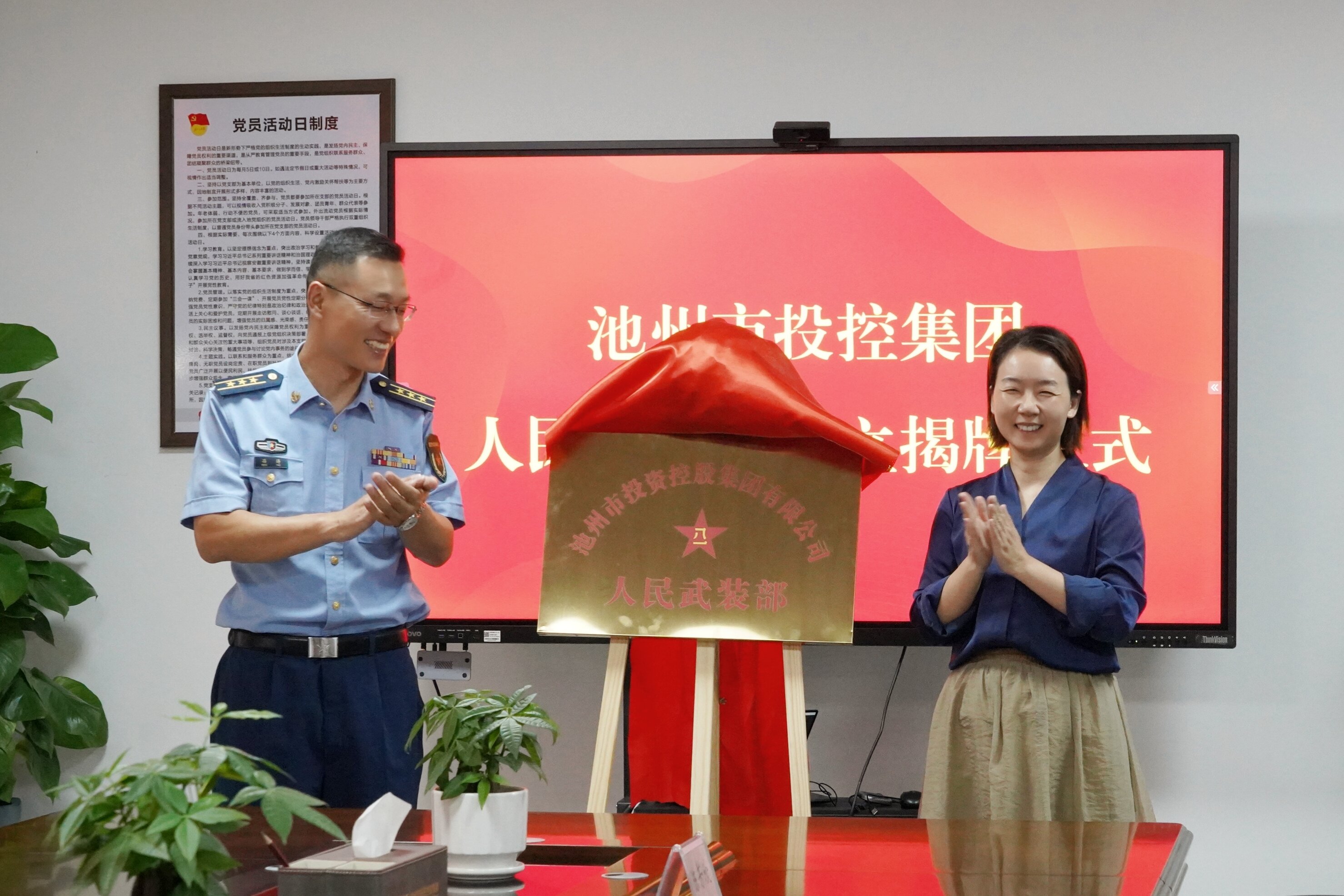 7月31日上午,池州市投資控股集團有限公司舉行人民武裝部成立揭牌儀式,貴池區(qū)委常委、區(qū)人武部政委馮濤與集團黨委副書記、工會主席嚴艷共同為集團人民武裝部揭牌。集團總經(jīng)理助理、黨群工作部經(jīng)理汪興安等參加活動。